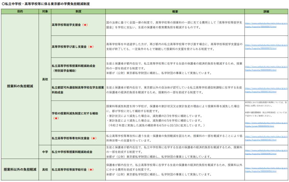東京都 都立高校・私立高校「学費負担軽減制度」-2025年