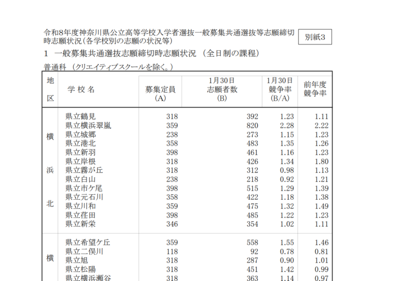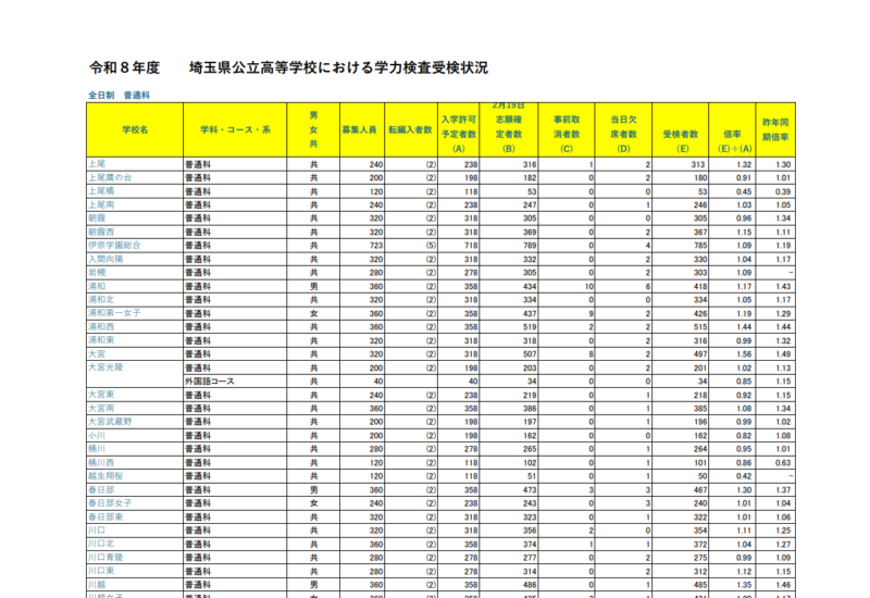 〈2026年度入試〉埼玉県「進路希望調査結果(12月15日現在)」発表-市立浦和2.35倍など