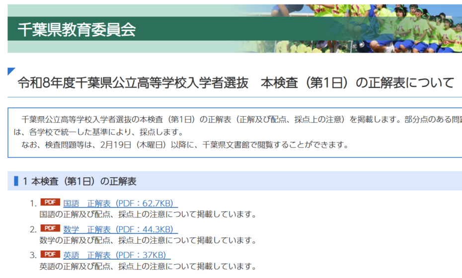 〈2026年度入試〉千葉県 公立高校 「本検査の正解表(1日目)」※順次更新