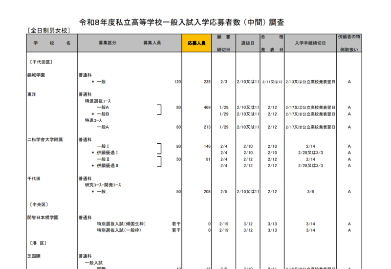 〈2026年度入試〉東京都「都立高校 入学者選抜応募状況(推薦応募)」-令和8年度