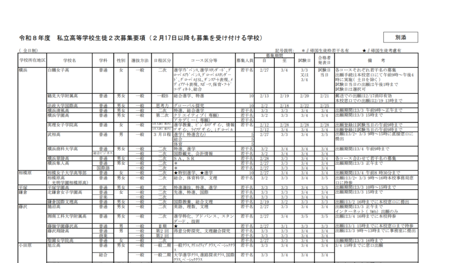 〈2026年度入試〉神奈川県 私立高校「2次募集について」発表-令和8年度