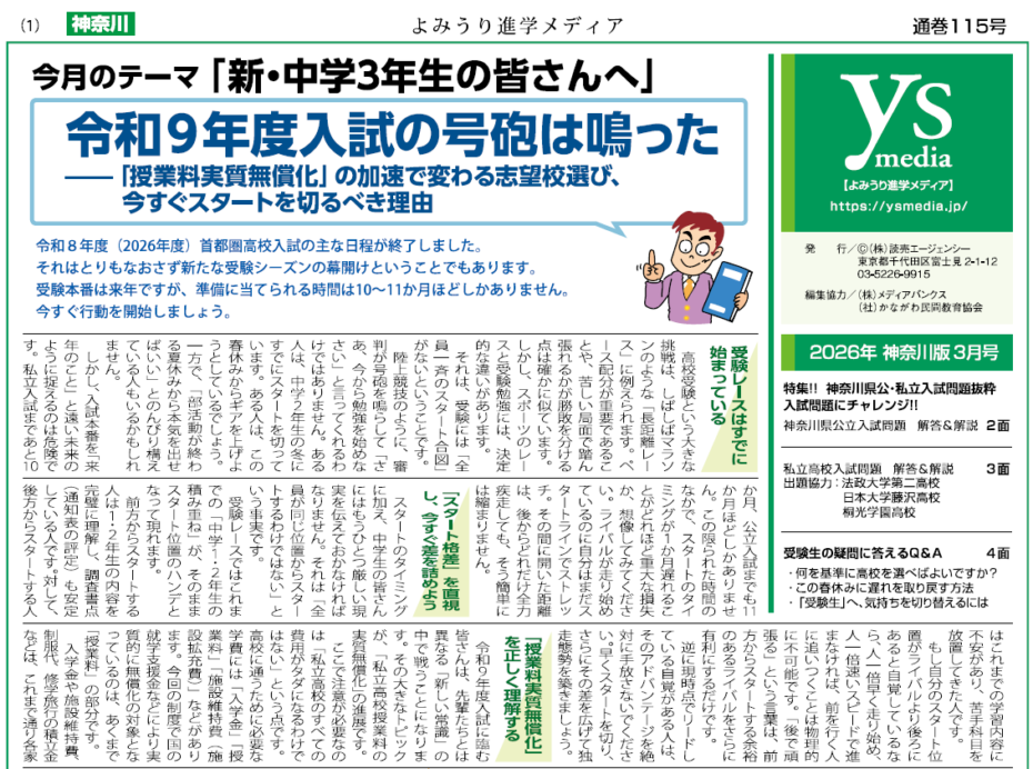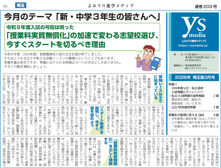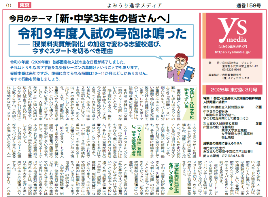 ■よみうり進学メディア3月号(紙面版)配布開始■2026年