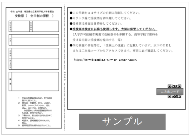 ・右側には、志願先高等学校の指示する「受検上の注意」が記載されたURL及び二次元コードが記載されています。受検前日までに必ず内容を確認。