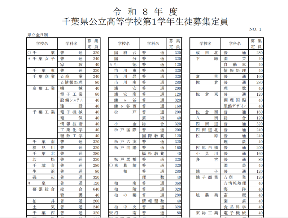 〈2026年度入試〉千葉県 公立高「第1学年生徒募集定員」を発表-令和8年度