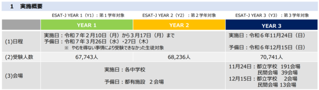 1 実施概要:YEAR1~3の受験人数が分かります。