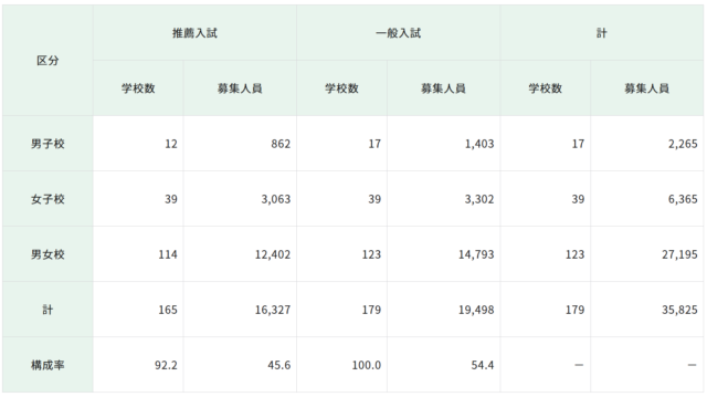 ※注:構成率は、生徒募集校のうちの割合を小数点第2位で四捨五入して算出