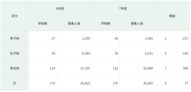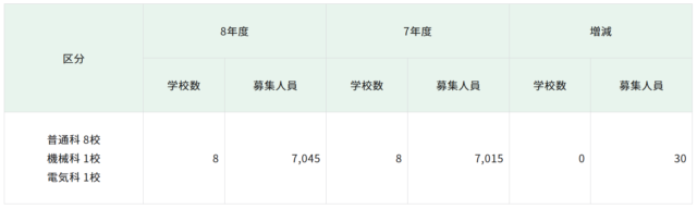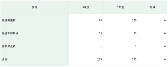・生徒を募集する学校数は、全日制課程179校、定時制課程3校、通信制課程8校で、前年度と同数。