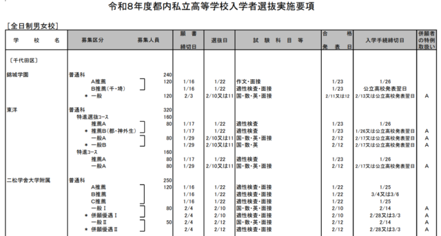 「令和8年度(2026年度)都内私立高等学校入学者選抜実施要項」