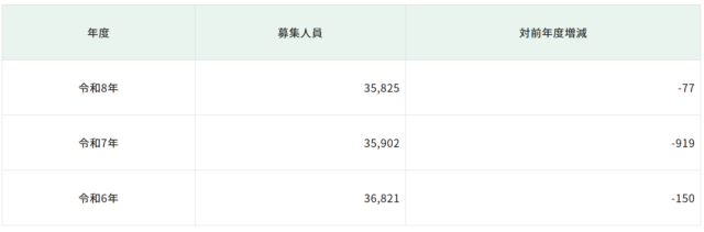 ※ 募集人員は、別表のとおり各学校が定めている※ 帰国生入試は除く