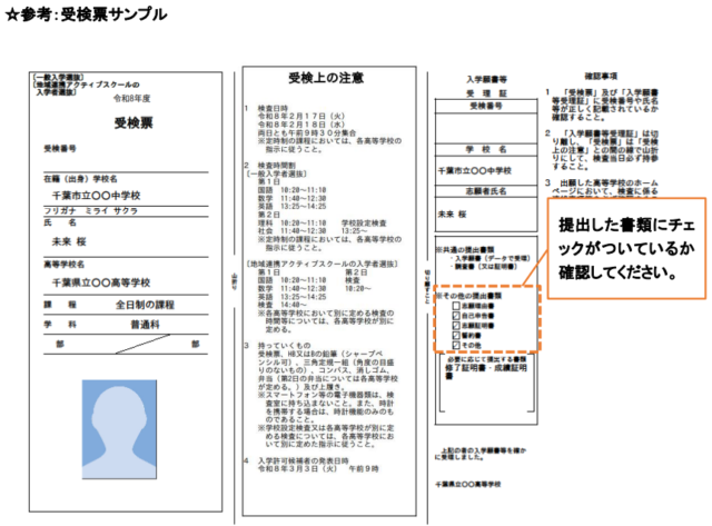 令和8年度千葉県公立高等学校入学者選抜入学願書等について