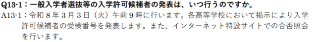 Q13 一般入学者選抜等の選抜結果の発表
