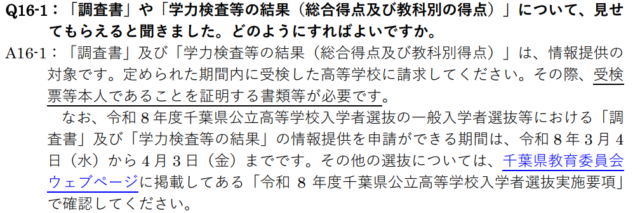 ■以上、詳しくは:千葉県教育委員会Webページ /高校入試Q&A