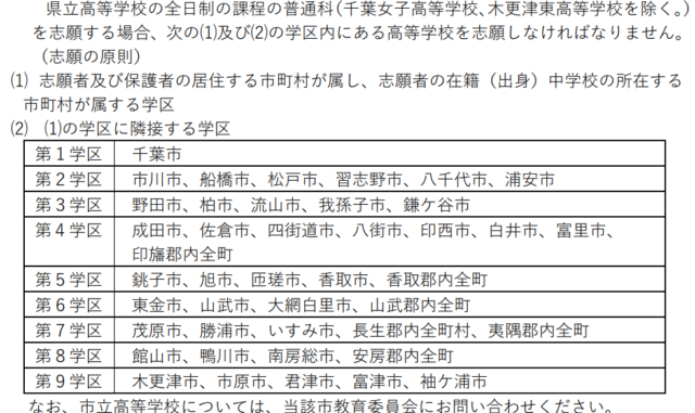 ■千葉県の学区については「県立高校ナビ」に詳しく掲載されています:千葉県県立高校ナビ