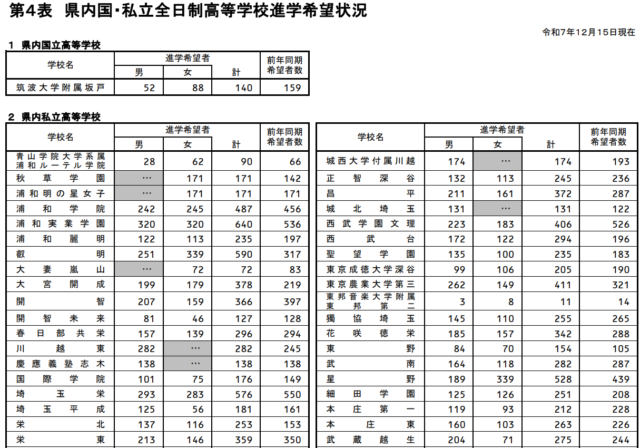 ■公立高等学校の進学希望状況:埼玉県教育委員会