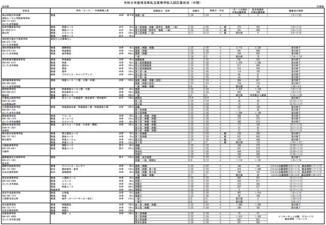 令和8年度埼玉県私立高等学校入試応募状況(中間)[令和8年1月13日(火)現在]について