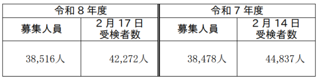 17日に行われた入学者選抜一般募集共通選抜、特別募集、中途退学者募集及び別科の学力検査等の受検者数と概要がまとめられています。