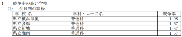 この発表は、神奈川県公立高校入学者選抜一般募集共通選抜、連携型中高一貫教育校連携募集(以下「連携募集」)、特別募集及び中途退学者募集の志願者数についてになります。