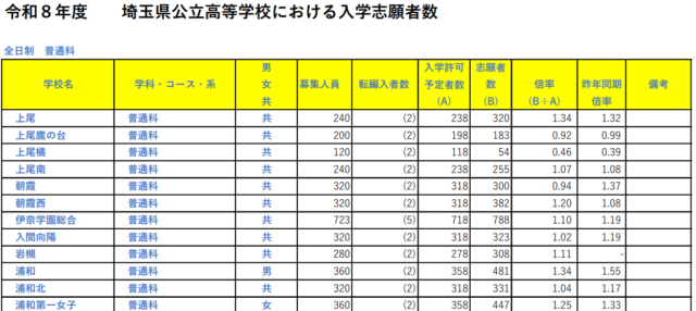 ■入学者志望者数の詳細・学校別一覧はこちら:埼玉県教育委員会