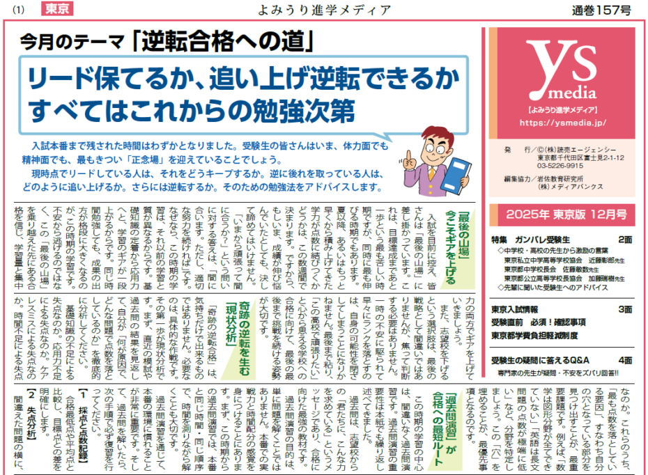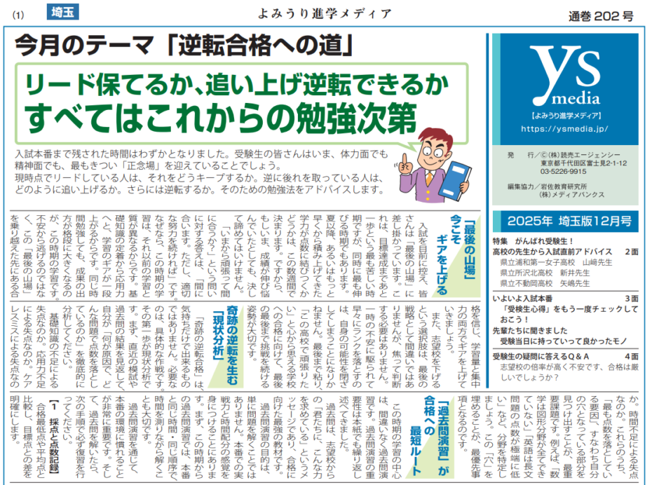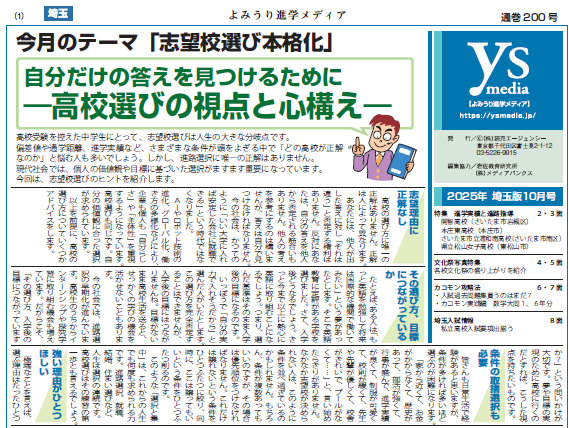「よみうり進学メディア」紙面版のバックナンバーです 東京版、埼玉版、神奈川版、千葉版があります