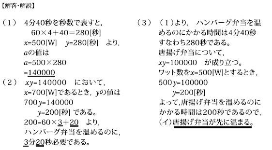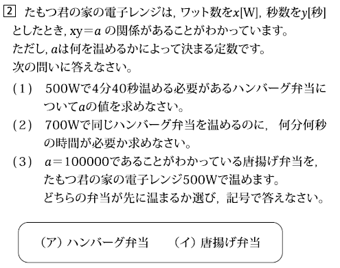 基本的な問題ですが、身近なものに数学を用いて考察する問題でもあるため、文章から状況を把握し、数式で処理する能力も必要です。